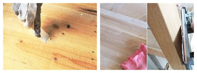 ● 視木紋深淺而定,膩?zhàn)右怨蔚帽楹?,刮膩?zhàn)訒r(shí)應(yīng)用力刮入木縫內(nèi),膩?zhàn)痈稍锖笥蒙凹埓蚰氐?