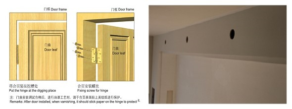 ● 安裝合頁必須在門扇及門框上雙面開槽,門扇開口與合頁嚴(yán)密,安裝時(shí)先用普通直坆螺釘安裝,紙膠帶嚴(yán)密,防止變形;