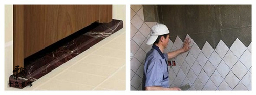 ● 過門石安裝標(biāo)準(zhǔn):門套必須落在過門石上面,不得直接落地防止受潮;