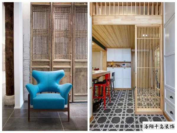 硬裝上會用復(fù)古的元素裝飾墻面或地面。比如充滿中國風的木門。