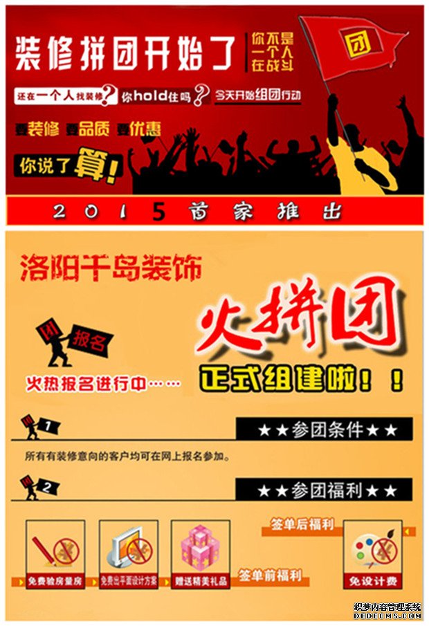 凡通過網(wǎng)絡(luò)報名后,我們工作人員會以短信或者電話確認登記,憑借短信到店咨詢即可成為本次團裝活動團員!趕快行動起來,終極神秘大禮等你來拿!洛陽千島裝飾,速度、品質(zhì)、性價比,我們力爭做洛陽的裝飾公司!