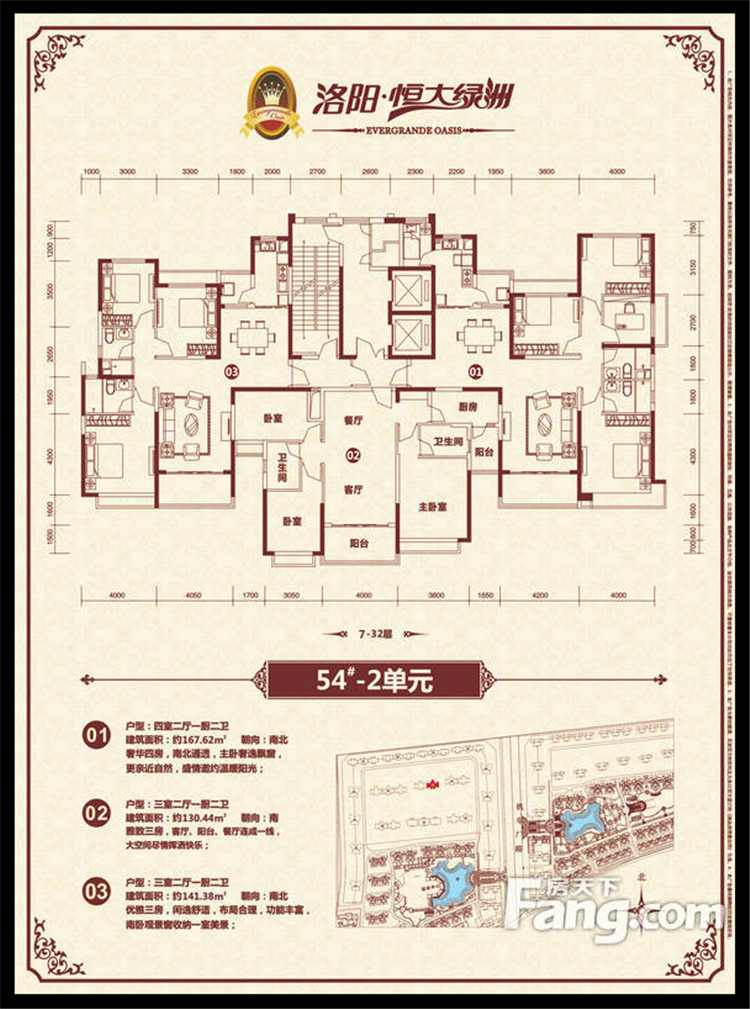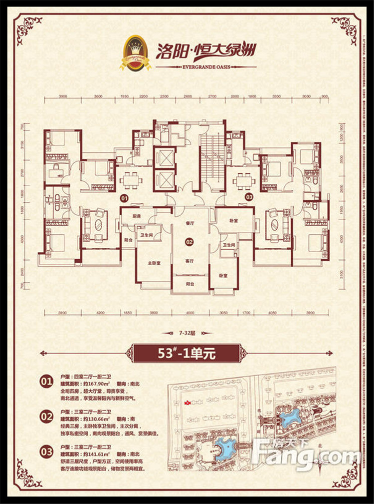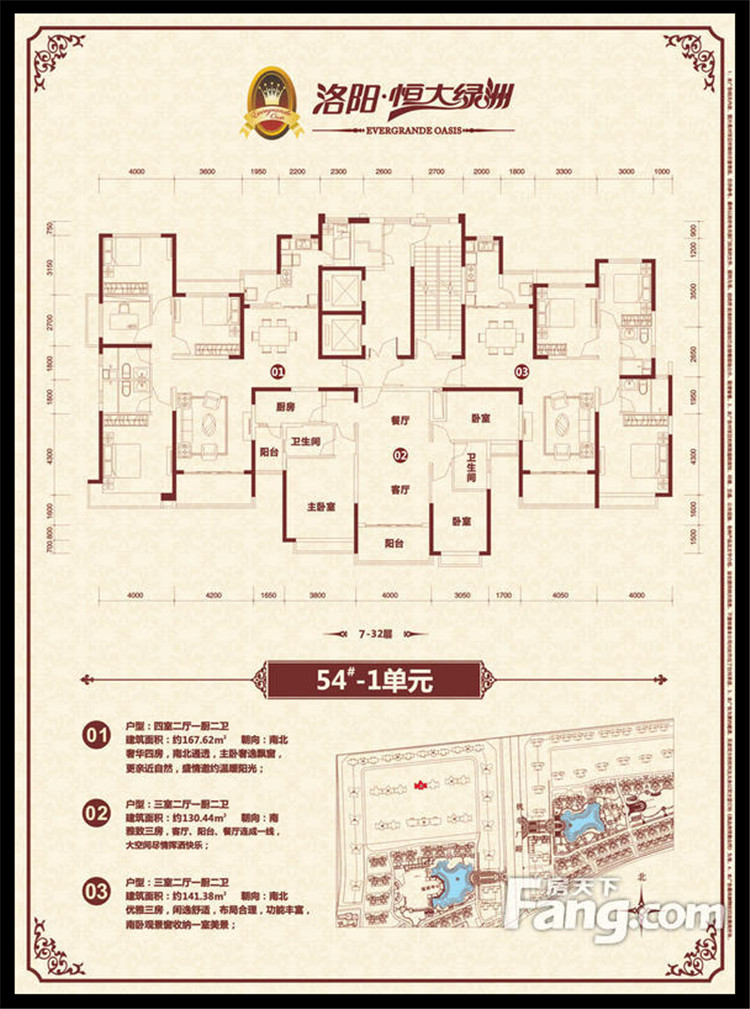 恒大綠洲項(xiàng)目位于洛陽市瀍河區(qū)洛陽市東出口,洛河以北、中州東路兩側(cè)、二廣高速以西,項(xiàng)目獨(dú)享洛河北岸3500多米河岸線,且處于洛陽市城市東西中軸線中州路東段,臨中州路街面長2000余米,有多路公交車直達(dá)。恒大綠洲全部項(xiàng)目占地面積約1338畝,規(guī)劃建筑面積近301萬平方米,居住單位2.06萬余戶,除居住建筑外,項(xiàng)目內(nèi)還配置了運(yùn)動(dòng)中心、綜合樓(會(huì)所)、幼兒園、小學(xué)、中學(xué)、商業(yè)配套、五星級(jí)酒店等,整個(gè)項(xiàng)目建成后,將形成約6.6萬人的居住規(guī)模。全部項(xiàng)目累計(jì)總投資超過100億元人民幣,預(yù)計(jì)上交稅收超過15億元人民幣。