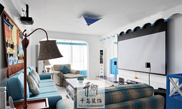 客廳必須也是藍(lán)色的,每一天入睡就像在大海的懷抱里,寂靜而舒適,怎么還會出現(xiàn)所謂的失眠了。每天只要待在這個(gè)空間,想來都是讓人心生歡喜的。