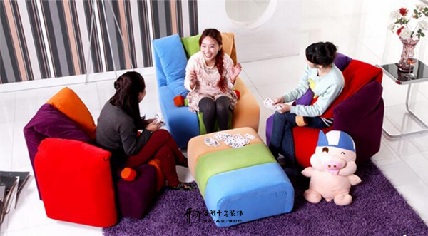 沙發(fā)的通體設(shè)計(jì)是糖果色為主,各種飽和度高的顏色使用在沙發(fā)的設(shè)計(jì)中,周邊的軟裝配飾也要搭配上顏色艷麗的色彩,像是壁畫、地毯、邊幾等等,不僅吸睛更是與沙發(fā)的設(shè)計(jì)融為一體,保證空間配色的完整感。