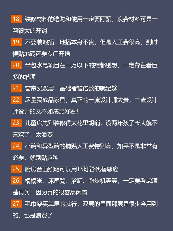 為什么裝修前期看著便宜,后期越裝預(yù)算越多?常見(jiàn)裝修的增項(xiàng)有哪些?下面一一列舉: