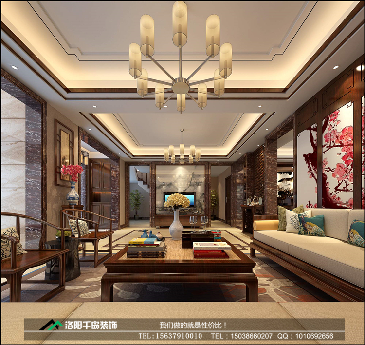 洛陽開元名郡225㎡復式新中式裝修案例@一樓客廳