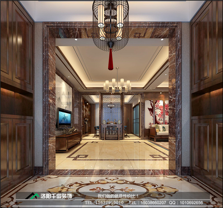 洛陽開元名郡225㎡復式新中式裝修案例@一樓入戶玄關(guān)