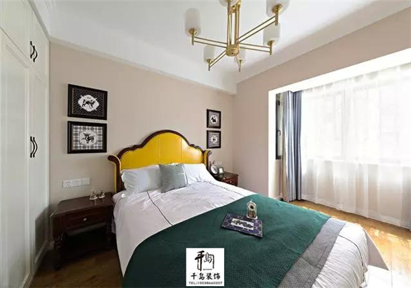 素雅的臥室,黃色的床頭點(diǎn)亮整個(gè)睡眠空間的色調(diào),陽(yáng)光透過(guò)薄紗般的窗簾照射在潔白的床上是那么的溫暖舒適。