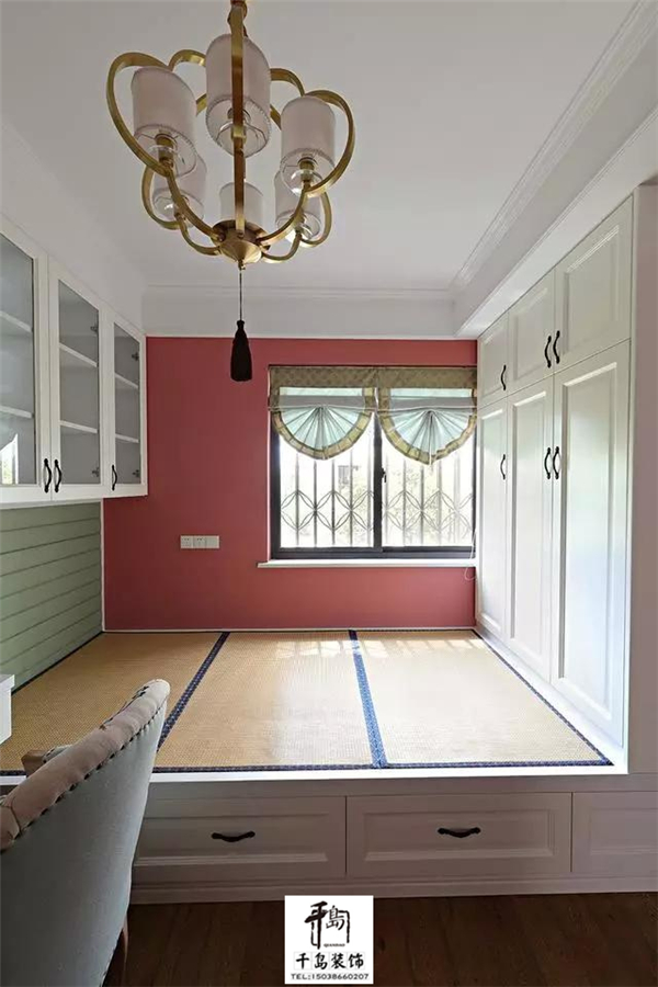 鏈接柜子一體的榻榻米增強(qiáng)的足夠的儲(chǔ)物空間??梢宰鳛闀?shū)房來(lái)使用,同時(shí)還可以作為客房使用。