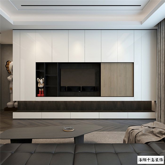 最后,洛陽裝修公司的小編提醒大家,一整面電視柜的設計,要遵循二八原則,盡量80%都有門板蓋住,預留20%開放式空間就可以了,這樣把柜門關(guān)起來后,才不會看到很多雜物,會顯得整齊很多!電視柜的顏色建議選白色或者原木色的,就算是小戶型,也不會顯得有壓抑感!