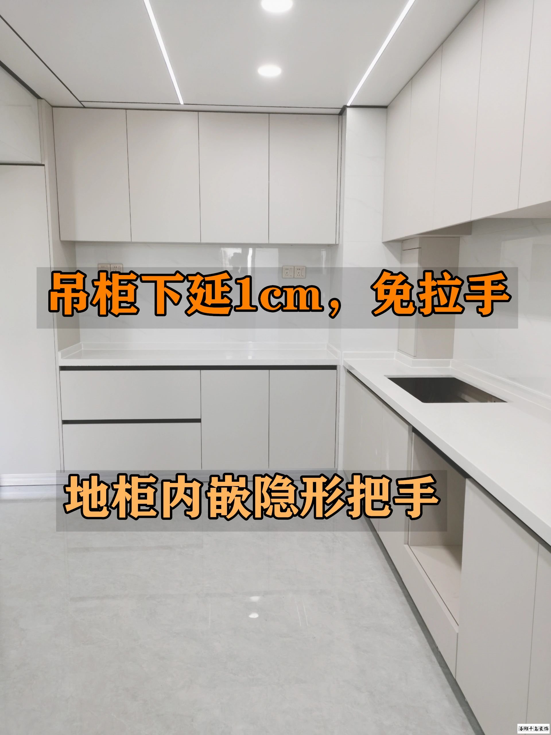其次,櫥柜把手一個都不要做,容易磕碰不說,時間久了到處都是油,擦都擦不住,地柜柜我們就內(nèi)嵌這種隱形把手,吊柜我們就這樣多做一厘米,手輕輕一摳就開了,而且呢,也不多花一分錢,整體看上去啊,更高級了。