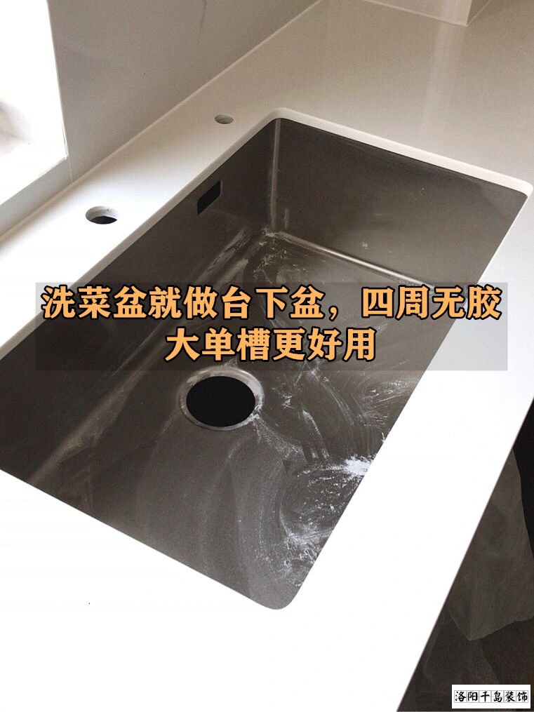 洗菜池就做這種臺下盆,四周沒有膠,不會發(fā)霉才更好做衛(wèi)生,不過一定要記得要做這種大單槽,洗個鍋啊什么的都沒問題,要是想像雙槽一樣分開洗,你就搭配個瀝水籃就好了。