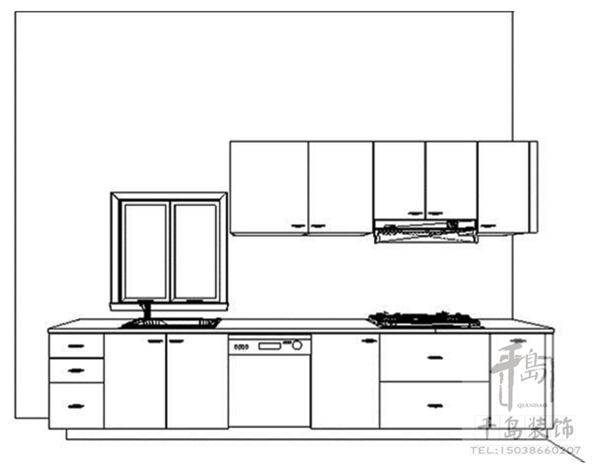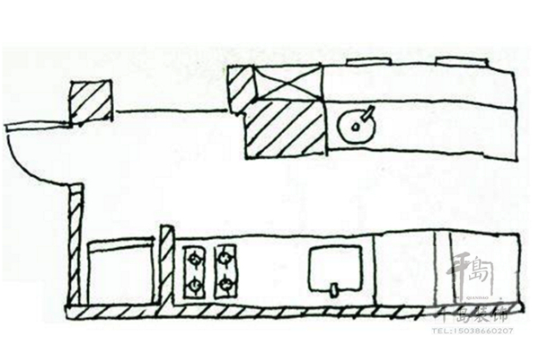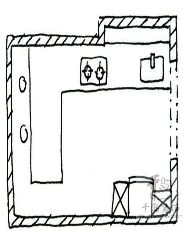 廚具主要是沿著墻面一字排開,區(qū)域劃分的重點(diǎn)為冰箱-工作臺-洗滌區(qū)-處理區(qū)-烹飪區(qū)-用膳區(qū),佳空間長度大約為2公尺。由于空間的限制,櫥柜應(yīng)貼墻布置以適應(yīng)空間的特點(diǎn)和滿足功能的需求,烹飪用具不能過多,對櫥柜高度要仔細(xì)安置。