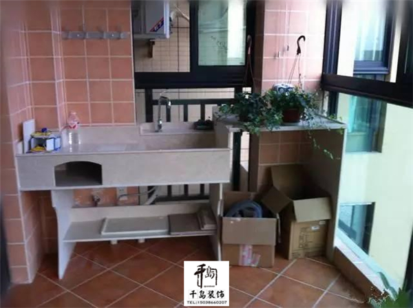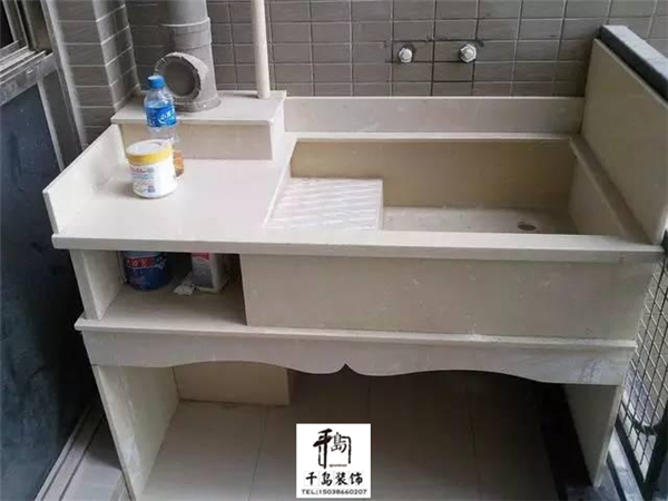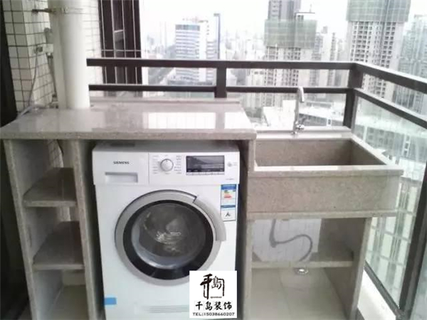 使用花崗巖制作的臺面,還可以把洗衣機(jī)放在里面,這樣以后在陽臺上面洗衣服很方便。