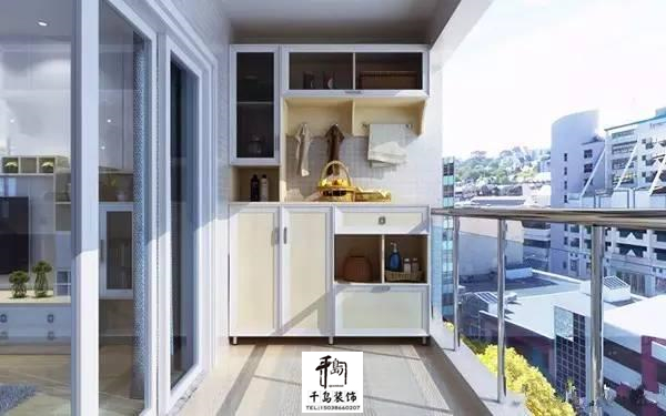 陽臺的空間大的話,還可以這樣設(shè)計,一邊做成儲物柜,另一邊設(shè)計成洗漱池,一舉兩得。