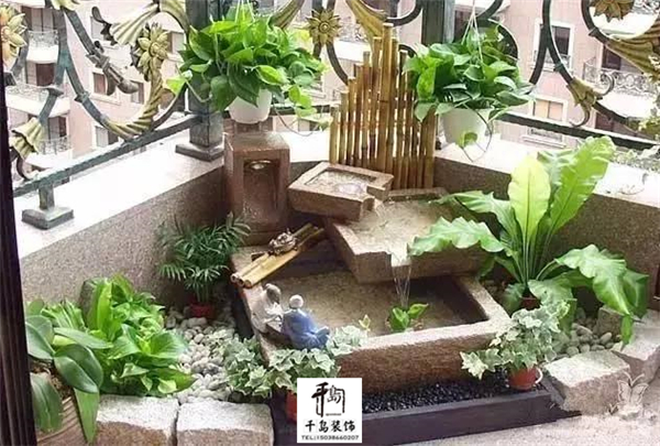 這是在陽臺上面設(shè)計的水景,生活充滿了詩情畫意啊!