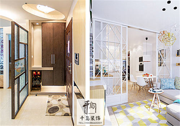 玄關分為軟硬兩種,對于小戶型來說常采用的便是軟玄關,設計形式常見的就是用低矮的柜子來劃分區(qū)域。
