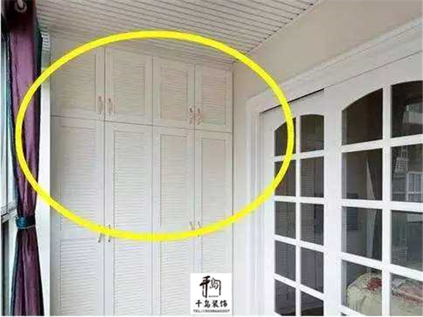 想要把陽臺利用起來這個想法是不錯,但是裝柜子實在是不合適,因為陽臺是屬于比較潮濕的地方,你若是放這種柜子,木質(zhì)柜子容易壞不說,里面放的東西可能也不保了。實在是不壞算呀!不如擺個大吊椅什么的,坐在上面看看外面的風景,這樣多好!何必浪費錢去裝個柜子呢!哎!