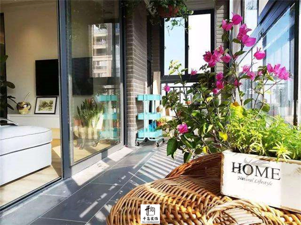 客廳陽臺一分為二,準(zhǔn)確的說是功能上一分為二,一半是曬衣區(qū),一半是休閑區(qū)(種花種草),滿足了多種功能需求,而且曬衣區(qū)剛好客廳看不到,所以整體也更加美觀;