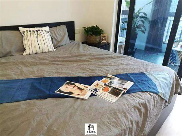 主臥選用灰色的被子,黑色的床,白色的墻面,經(jīng)典的黑白灰搭配,低調(diào)、安靜、沉穩(wěn);