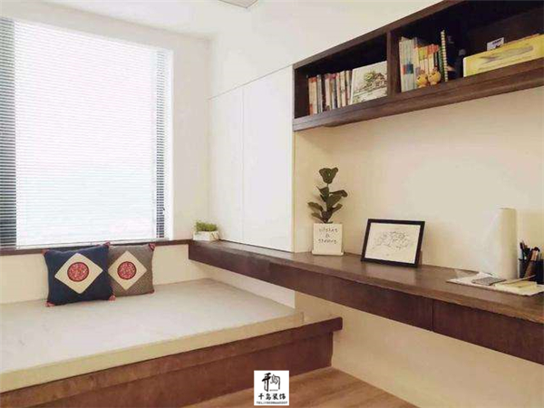書房做成榻榻米,客人來時,它是客房,平時則充當(dāng)著書房的作用;