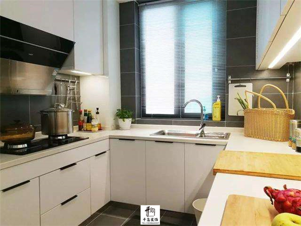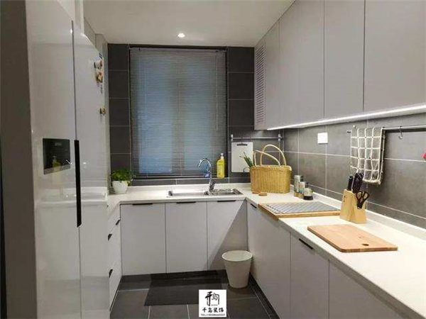 另外,這里還有一個亮點(diǎn),即是吊柜中,百葉門板處是藏著的燃?xì)鉄崴?,讓廚房看起來更加整潔、干凈;